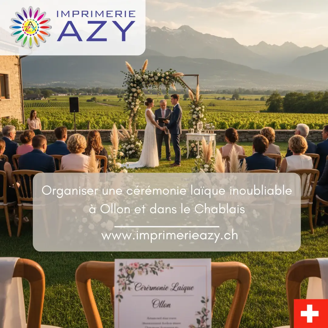 Imprimerie Azy, implantée à Ollon depuis 1970, a vu évoluer les unions de la région. L’atelier a observé les tendances, les réussites, les détails qui changent tout. Voici une vision claire pour organiser une cérémonie laïque Vaud cohérente, fluide et mémorable.